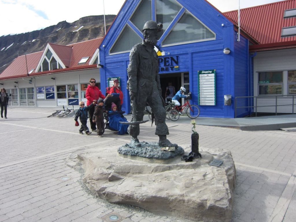 Turen med Bent er over. Klokken er nesten ett, og vi står på torget mellom Lompensenteret og Svalbardbutikken, butikken som har alt fra mat til ting som man har bruk for og til og med brennevin og vin. Vi ser på isbjørnen over inngangen til Svalbardbutikken og monumentet over Svalbards helter, gruvearbeiderne, dem som har gjort og gjør Svalbardsamfunnet mulig.
