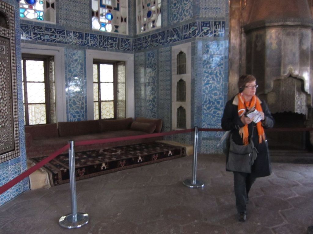 De neste tre timene vandrer vi rundt i palasset. Vi ser på utsikter, museer, bygninger, dekorasjoner og utsmykninger. Det er så mye å se og beundre. Palasset sto ferdig i 1465 og ble brukt av sultanene fram til 1856 da de påfølgende sultanene begynte å bygge sine egne palasser.