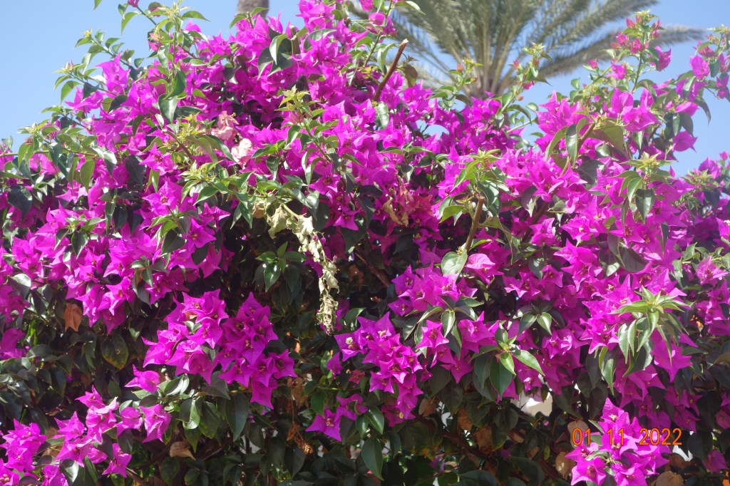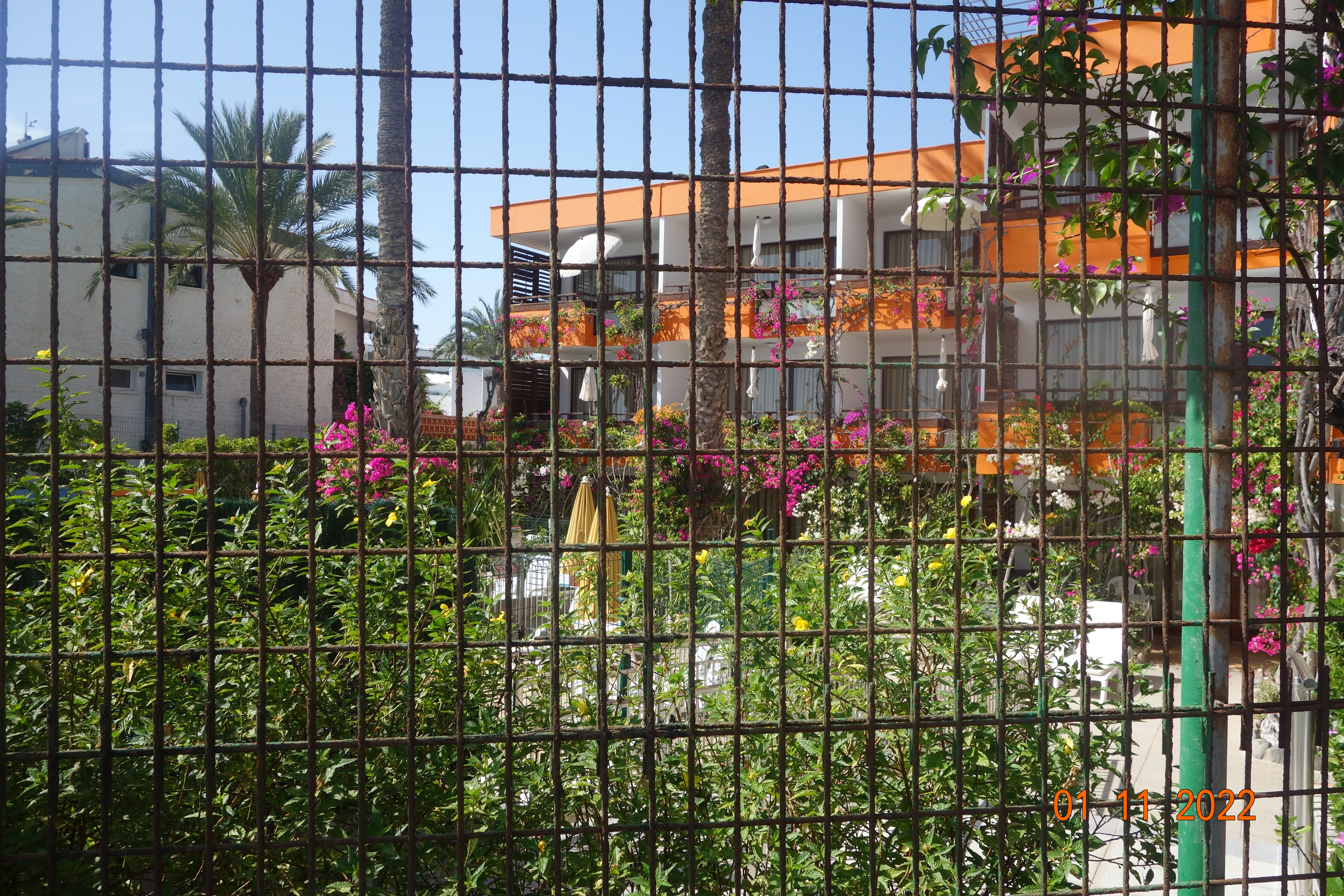Vi passerte en liten inngjerdet blomsterpark utenfor et av hotellene.