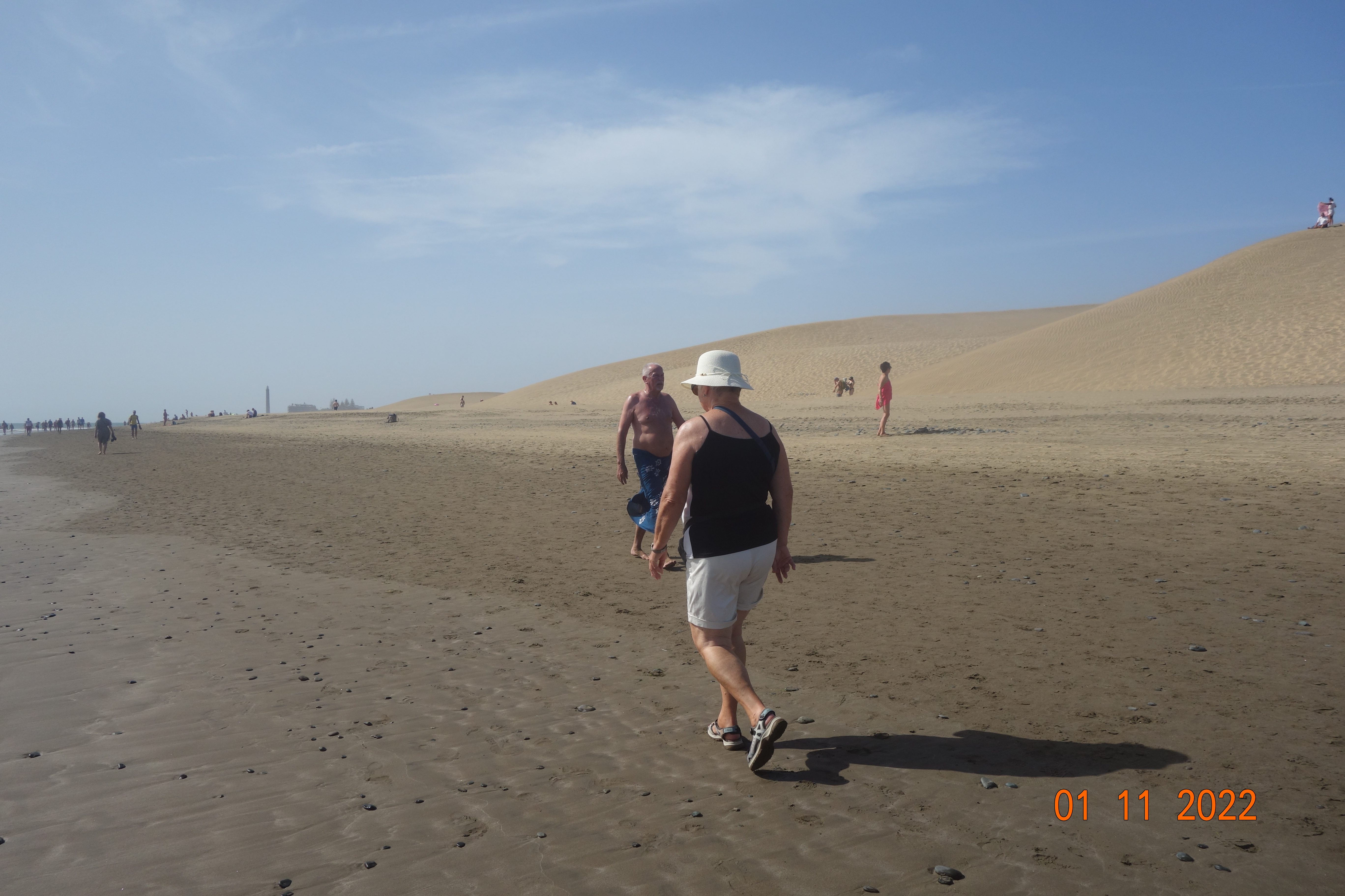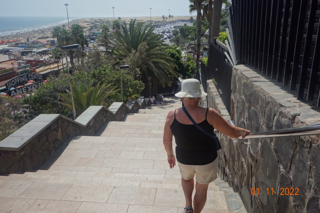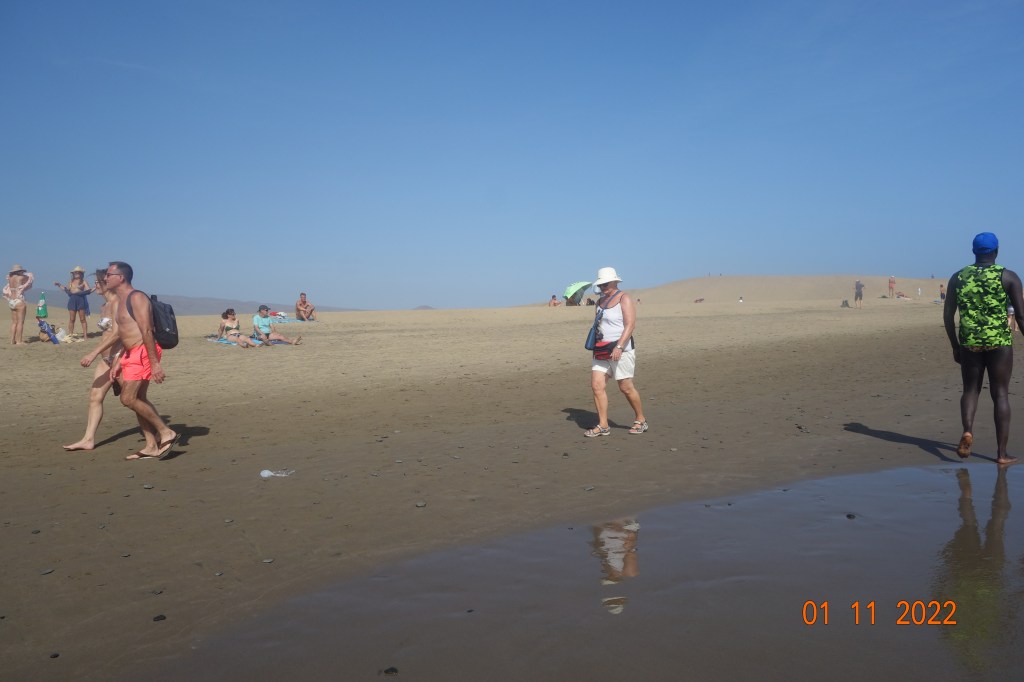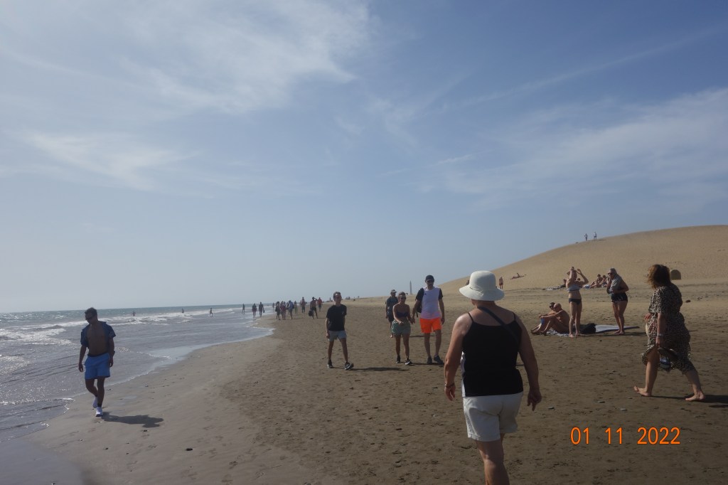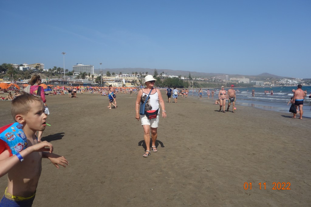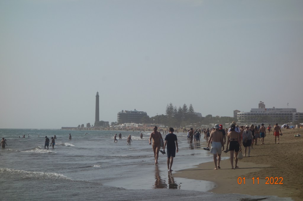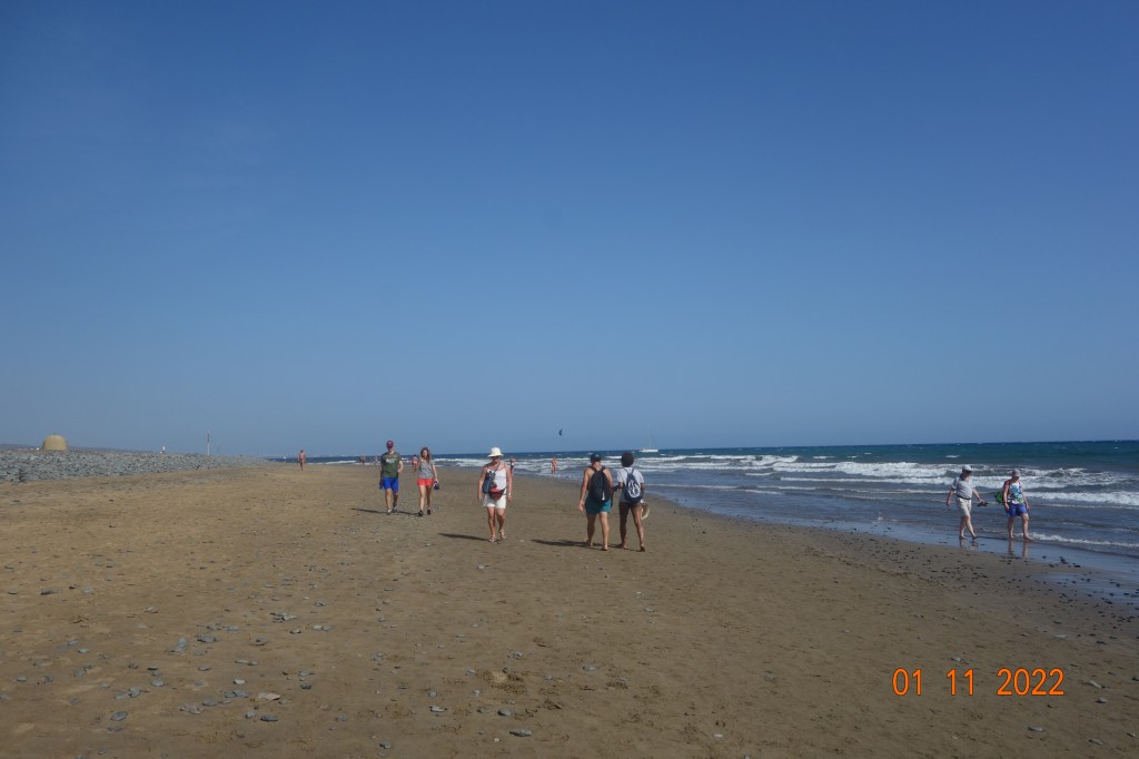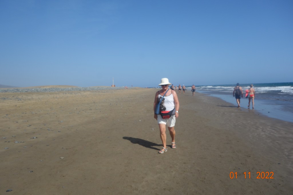 I går gikk Inger Johanne og jeg den mye omtalte vandreturen langs vannet fra Playa del Inglés til Faro de Maspalomas, en tur som jeg var usikker på om Inger Johanne ville klare, men hun insisterte på at det ville hun. Ikke bare en gang, men flere ganger underveis.