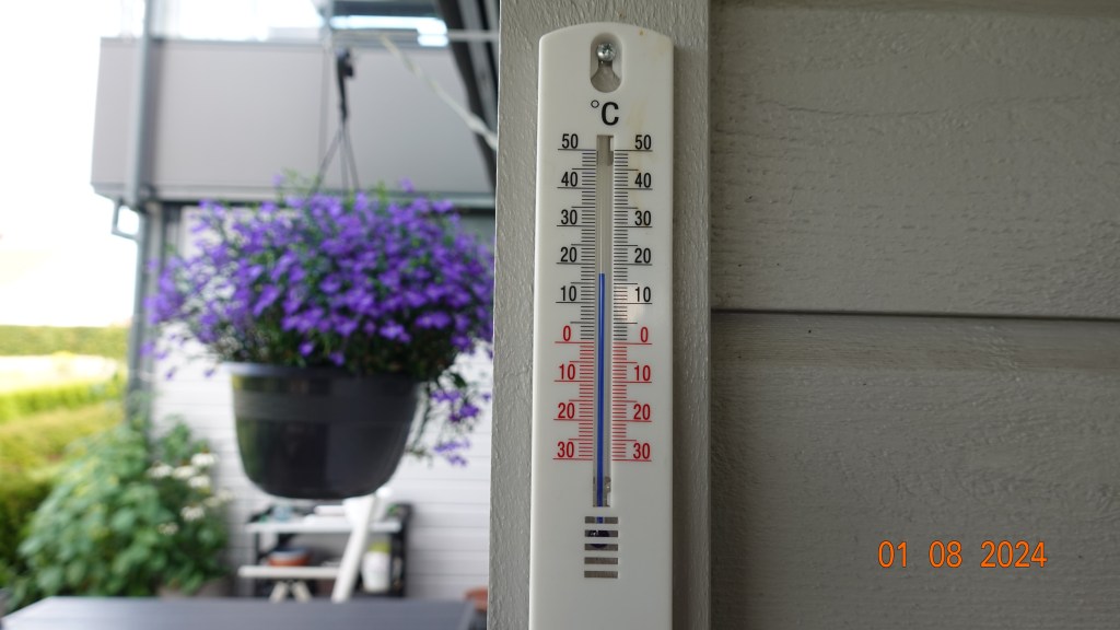 Atten grader og dis i dag.
