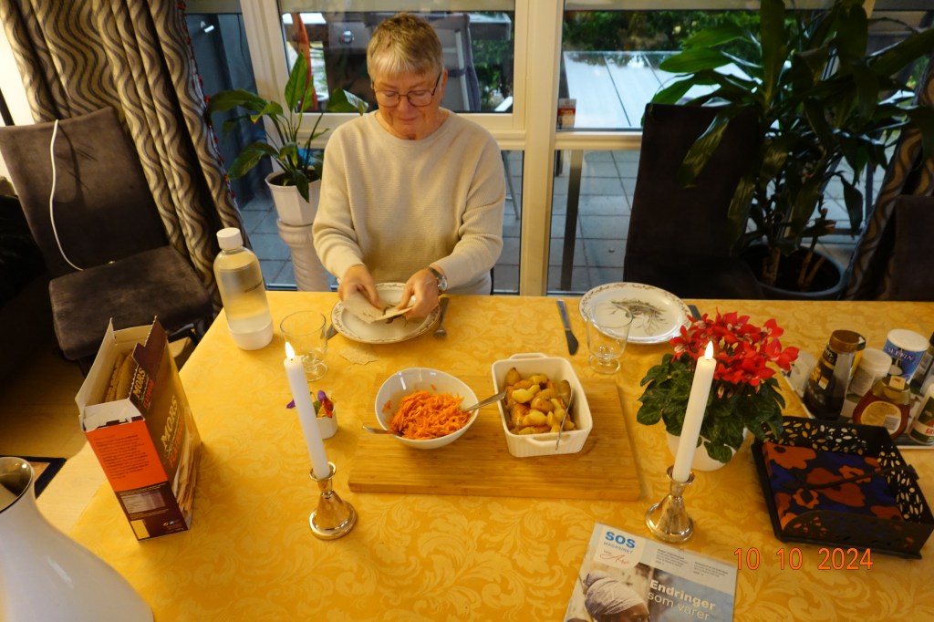- Til middag valgte vi laks som er en av Inger Johannes favoritter. Jeg fulgte en oppskrift som jeg fant på internett. Til punkt og prikke. Og at det ble godt, var begge enige om.
