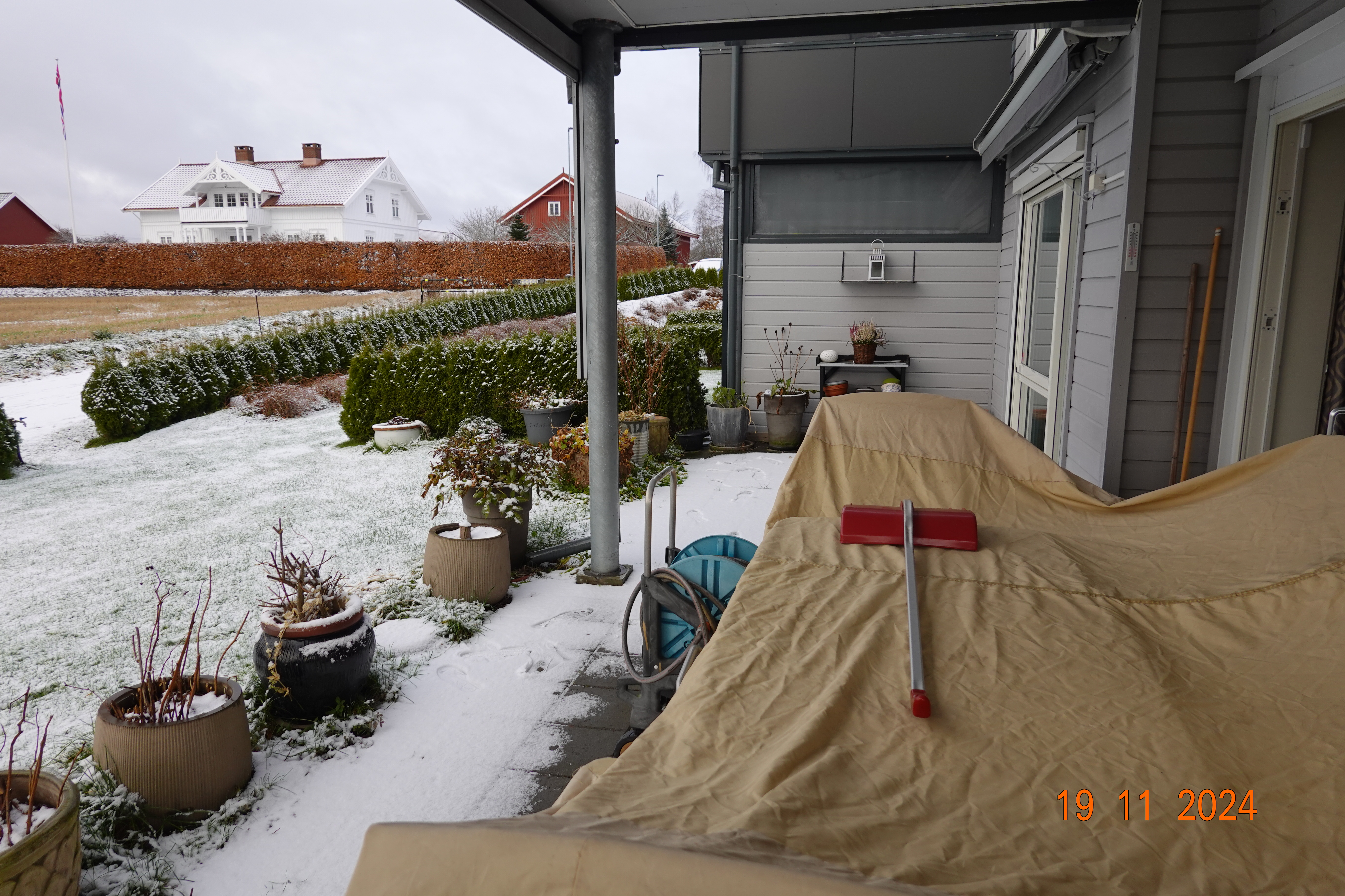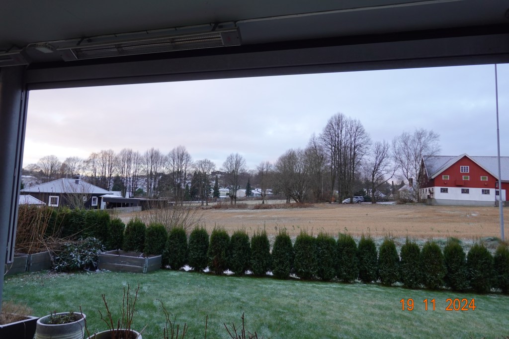 Mens jeg skriver, ser jeg ut på det hvite belegget som har kommet så uventet og uten invitasjon.
