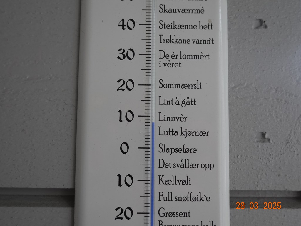 Klokka er halv åtte, det er tåke ute og fem plussgrader. I natt ga jeg opp å ligge på soverommet sammen med Inger Johanne. Jeg forsøkte, men lungene fylte seg igjen og hosten tvang seg fram, så jeg sto opp og fant ut at hvilestolen var den beste løsningen, som så ofte før. Men akkurat nå på morgenen er jeg mye bedre. Vi hadde planlagt å følge bisettelsen av en tidligere nabo, men på grunn av den ukontrollerbare hosten min, tenkte jeg at dette ikke lot seg gjøre. Så jeg får se hva som er mulig. Det er for øvrig den tredje dagen av ti med antibiotika.