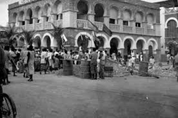 I Lille-Aden, på østsiden av Adenbukta, var det også krig, slik vi så det. Vi ble liggende på reia og så og hørte på helikoptrene som svevde over byen, den gamle byen som begynte nede på havna og steg innover mot land før bebyggelsen stoppet i fjellet som reiste seg bratt som en vegg mot ørkenen bak. En av våre var i land hos lege og kunne rapportere at de skjøt i gatene og kastet småbomber inn i barene der det hovedsakelig var engelskmenn. De andre fastboende var muslimer og frekventerte ikke steder der det ble solgt alkohol.