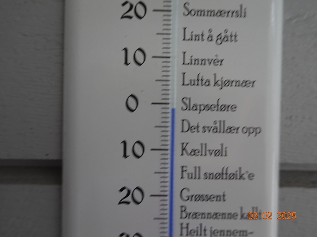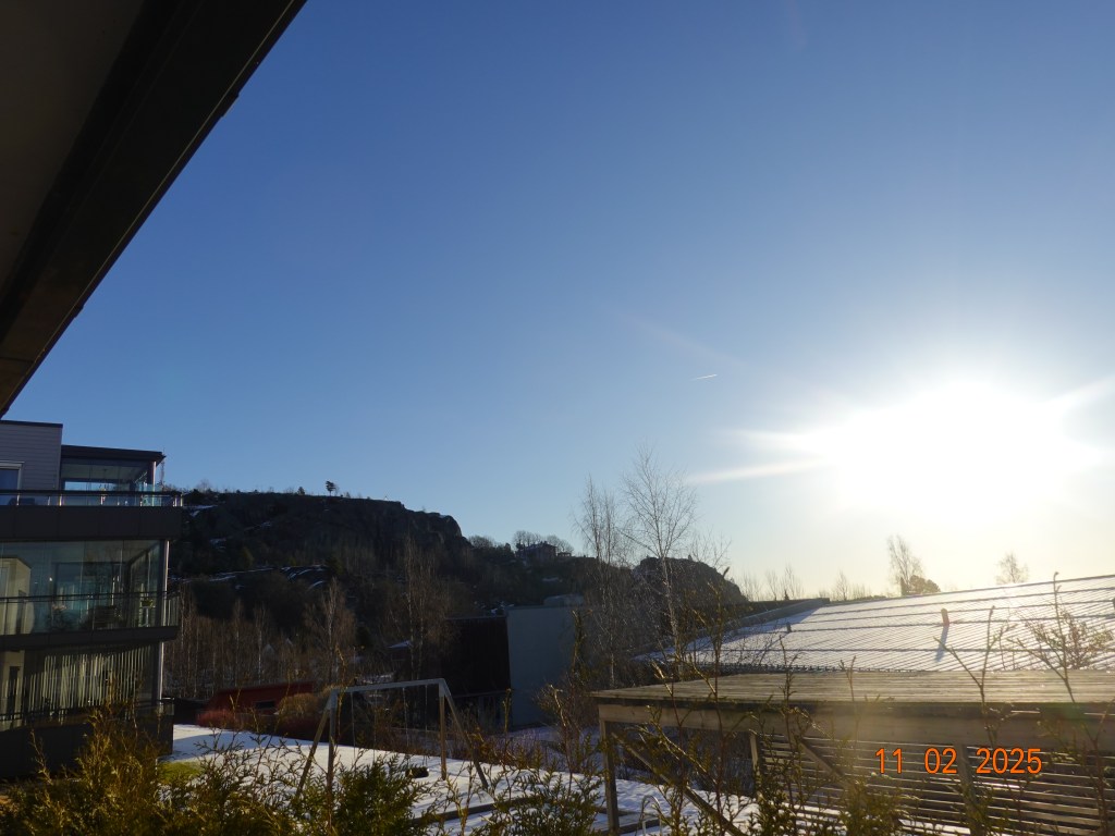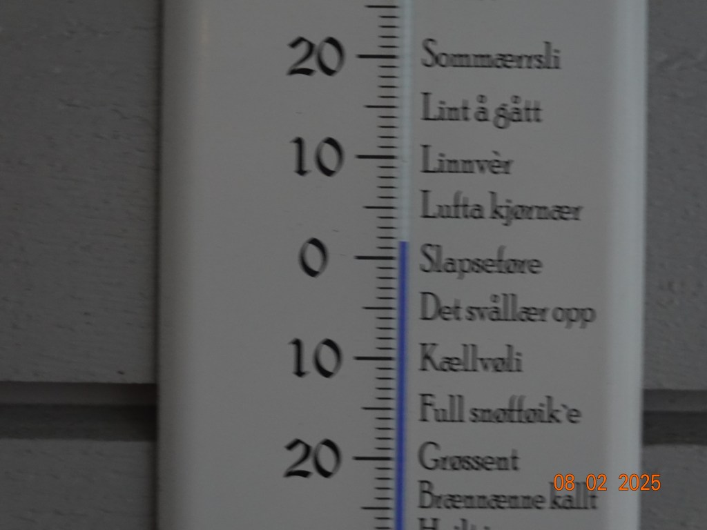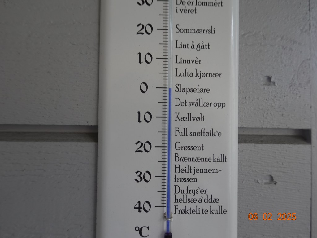 Og været er som varslet. Tre minusgrader nå på morgenen som kanskje blir et par plussgrader når sola kommer. Og sola gjør oss alle godt selv om ikke varmegradene vises med store tall.