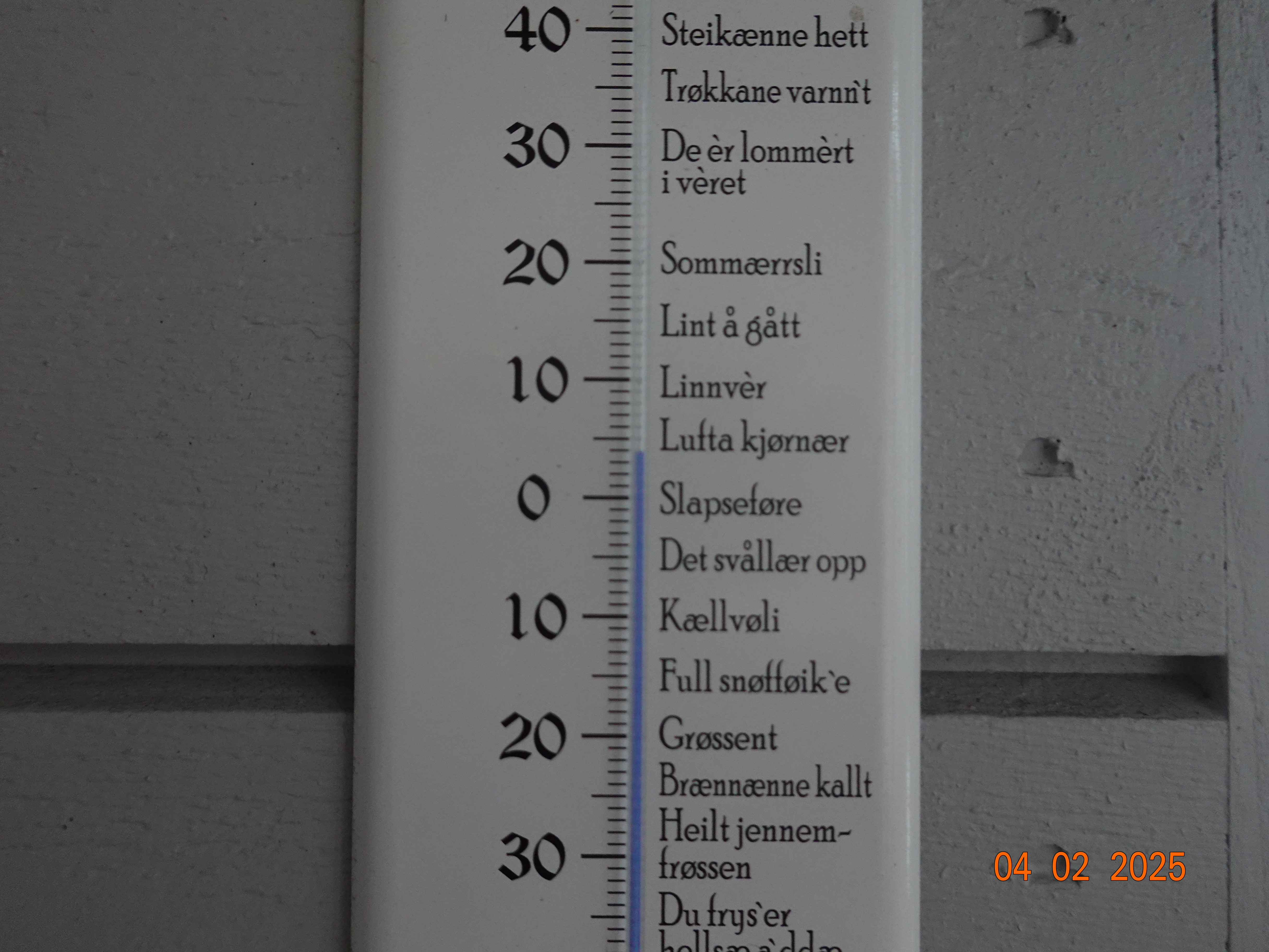 Jeg ser på gradestokken og ser fire varmegrader, en temperatur som gjør det lettere å puste for meg.