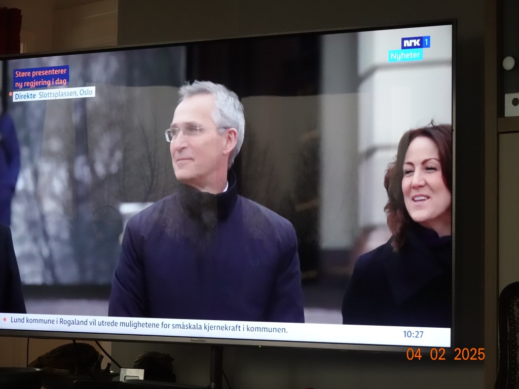 Klokka er snart åtte, og jeg hører på et litt personlig intervju med Jens Stoltenberg om hvordan han opplever det å være med i norsk politikk igjen, og om hvilken plan han har i jobben sin.
