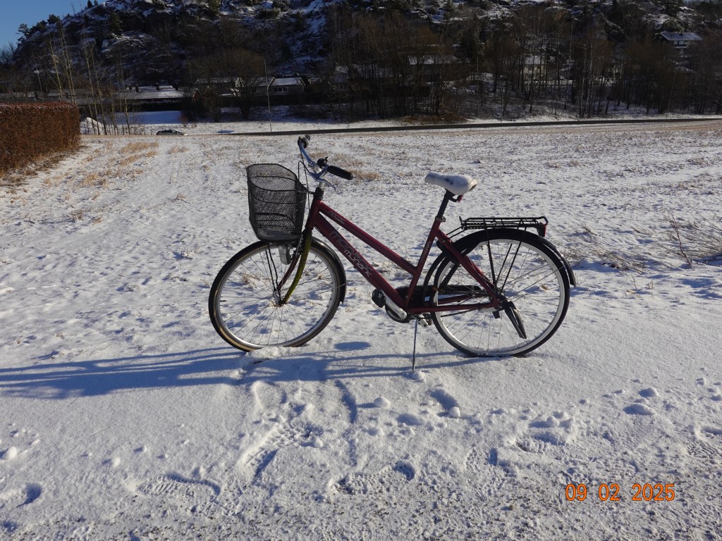 Boka som jeg leser nå.Kuldegrader som sliter på pusteorganene mineklokka seks på morgenenEn fellestur med Inger Johanne søndag formiddag, og hva ser vi her? En sykkel som ingen eier? Inger Johanne går fra megDer tok jeg henne igjenHjemme igjen, og se «springer den snart ut?»