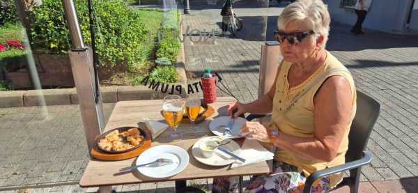 Deretter går turen til Lidl for å handle mat som vi skal ha med hjem, men mengden bestemmes av vektbegrensningene til Norwegian på tjuetre kilo per koffert. Eller kanskje vi gjør denne handleturen på lørdag før vi skal levere strandstolene hos Lena og Nisse. Da skal vi også bestille taxi til flyplassen med avreise herfra senest klokka fire om natten.